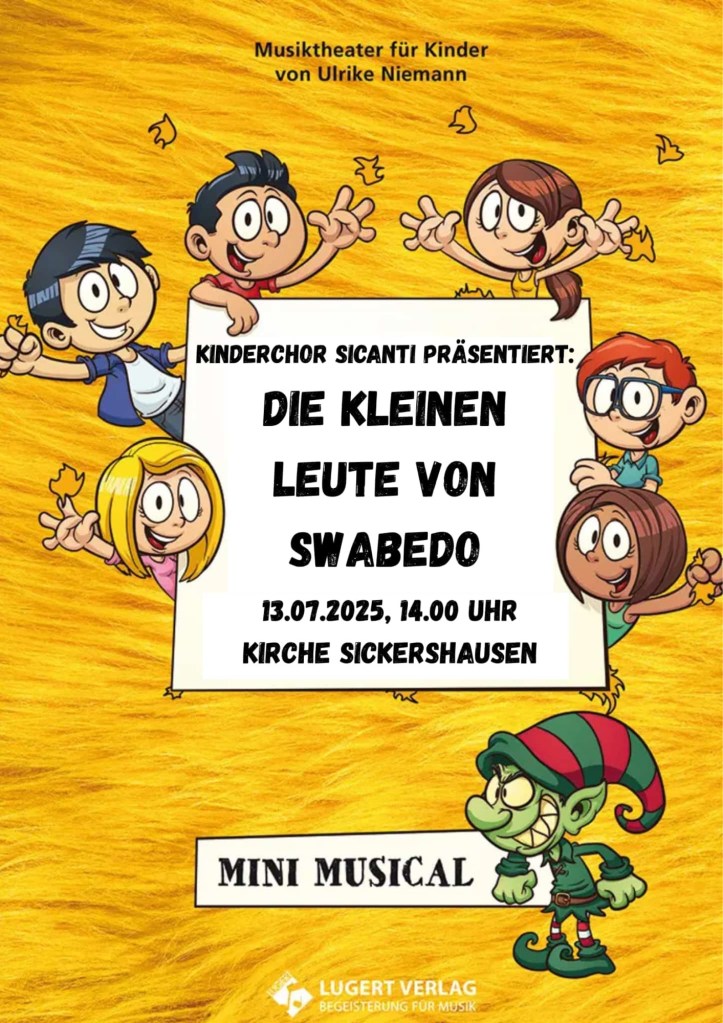 Unsere Sicanti präsentieren das Musical „Die kleinen Leute von Swabedo“ (kurze Beschreibung weiter unten) im Rahmen des Sickerhäuser Weinfestes am Sonntag, 13. Juli um 14 Uhr in der Sickershäuser Johanneskirche.